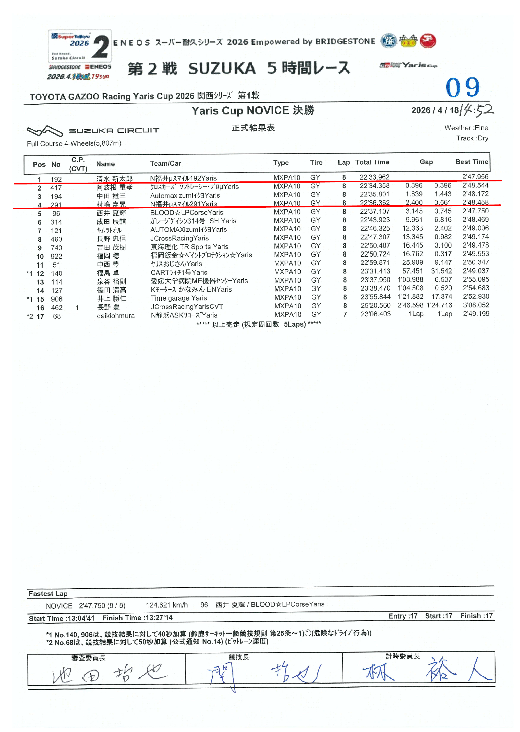占有走行(Gr.2) 4 / 10位 2’48.758